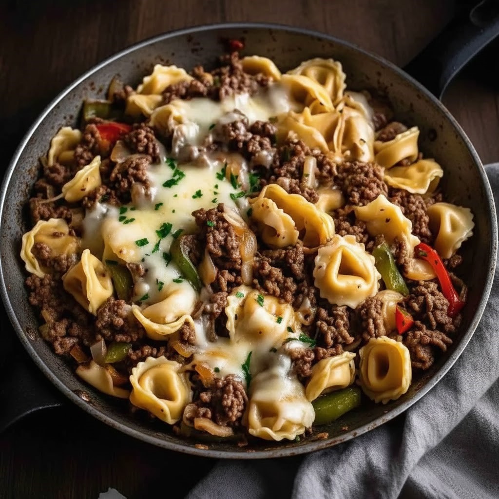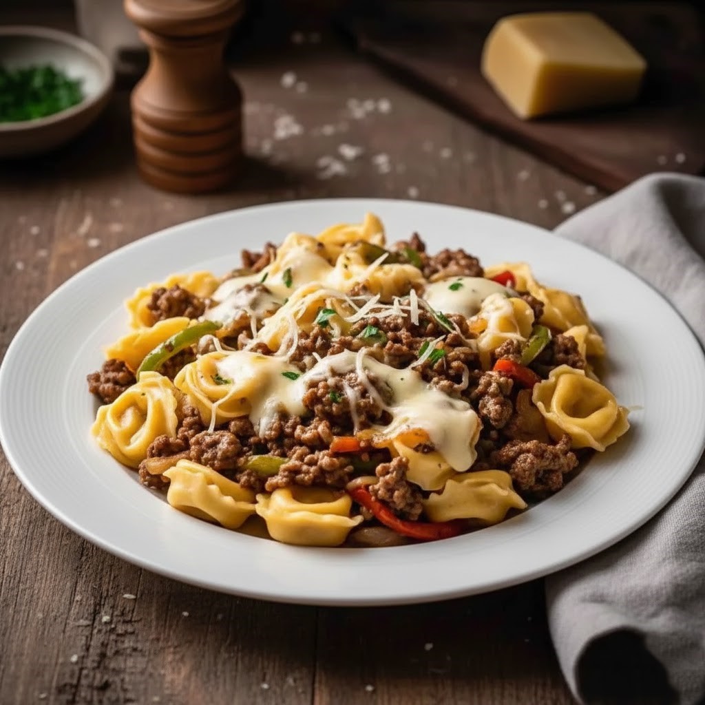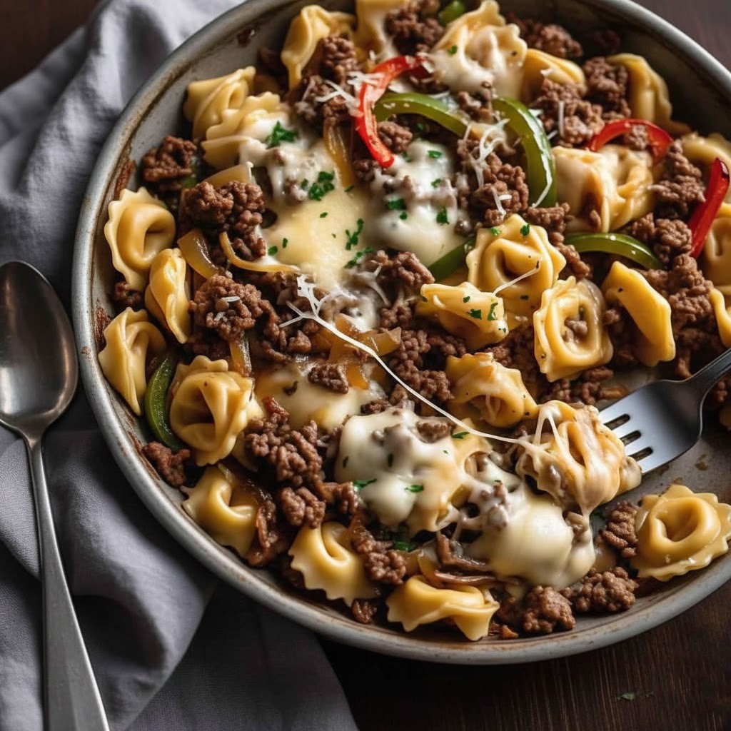 This recipe combines two favorites in one dish: pasta and the classic Philly cheesesteak. The creamy cheese sauce coats every tortellini, making each bite rich and satisfying.