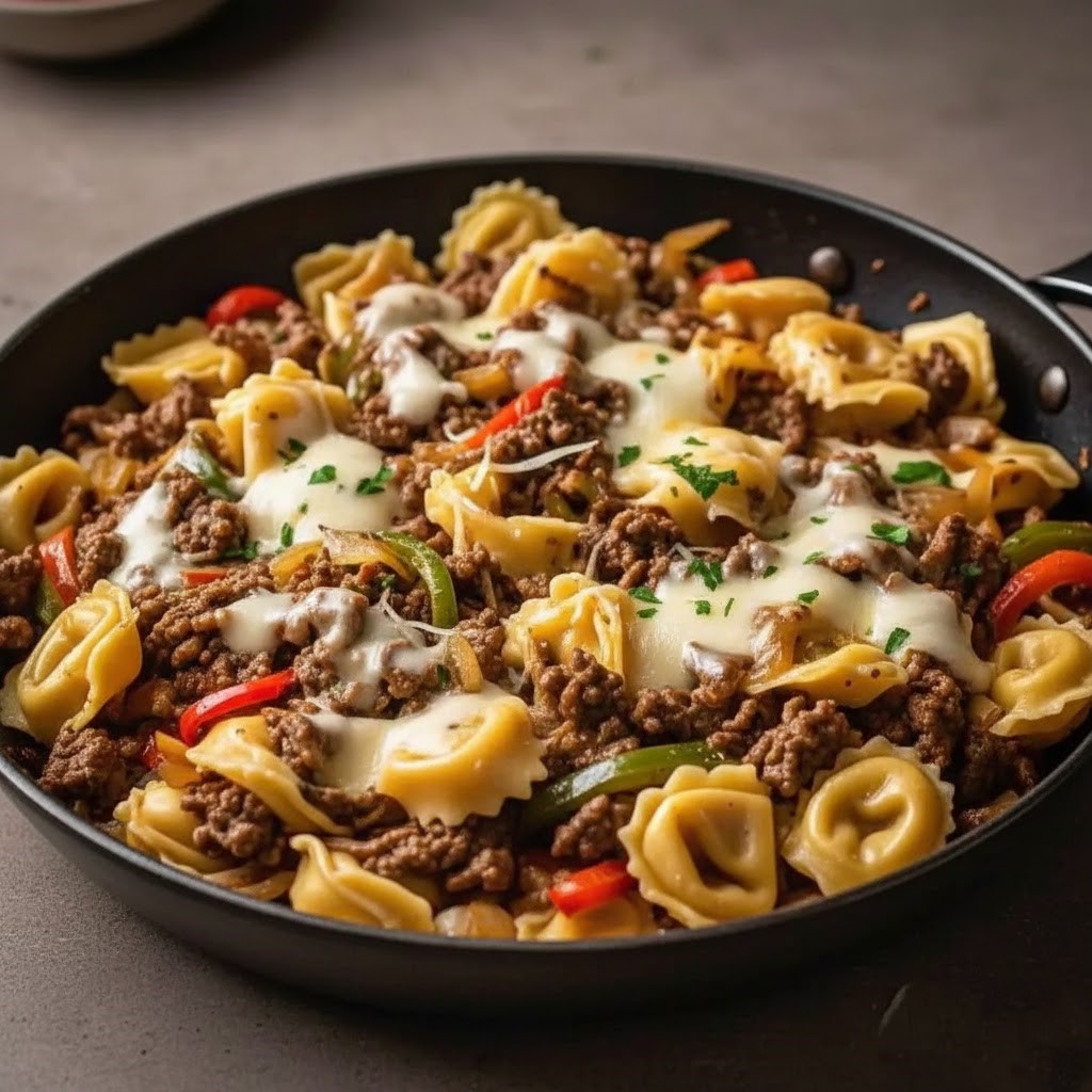 This recipe combines two favorites in one dish: pasta and the classic Philly cheesesteak. The creamy cheese sauce coats every tortellini, making each bite rich and satisfying.