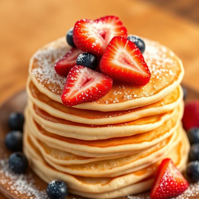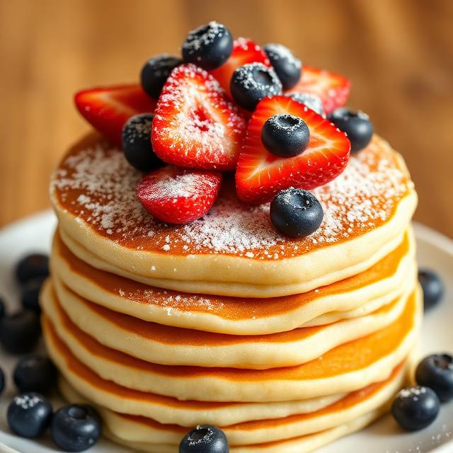 Fresh berries always add a bright and refreshing touch to the pancakes. You can mix strawberries, blueberries, raspberries, or whatever fruit you enjoy most.