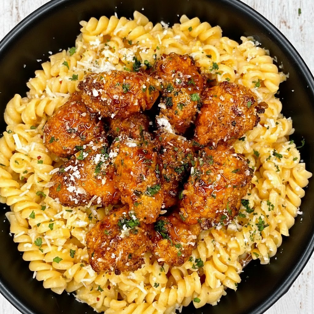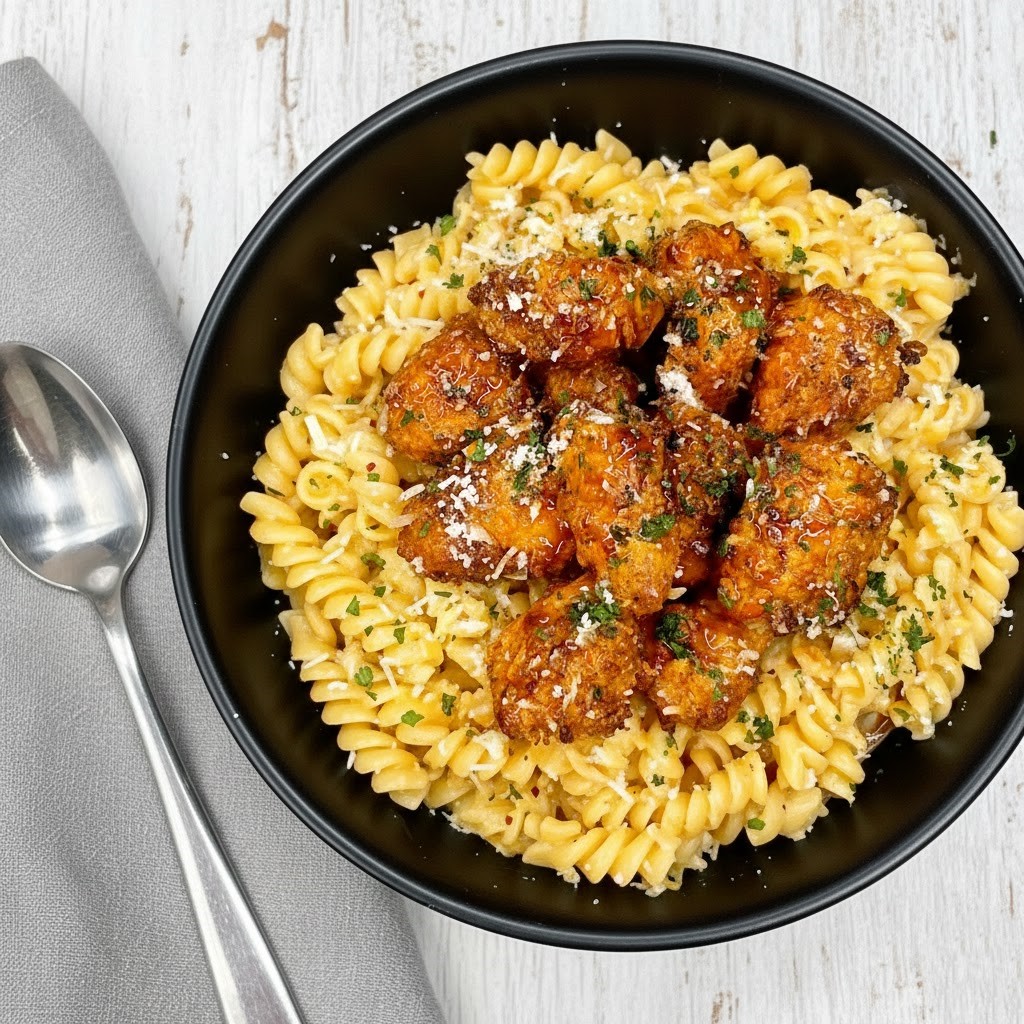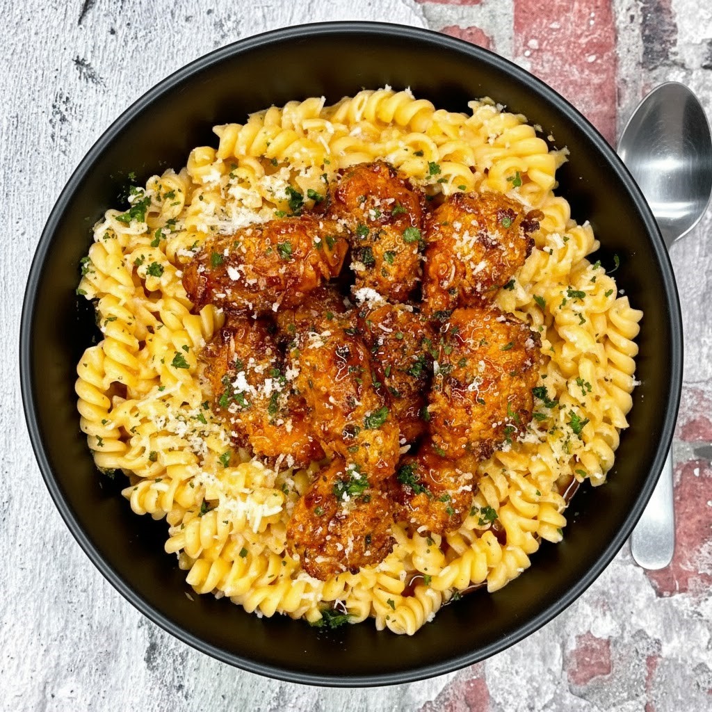 This recipe combines crispy, crunchy chicken with cheesy fusili pasta coated in a sweet and spicy honey sauce. Each ingredient plays a role in creating the perfect balance of flavors and textures.