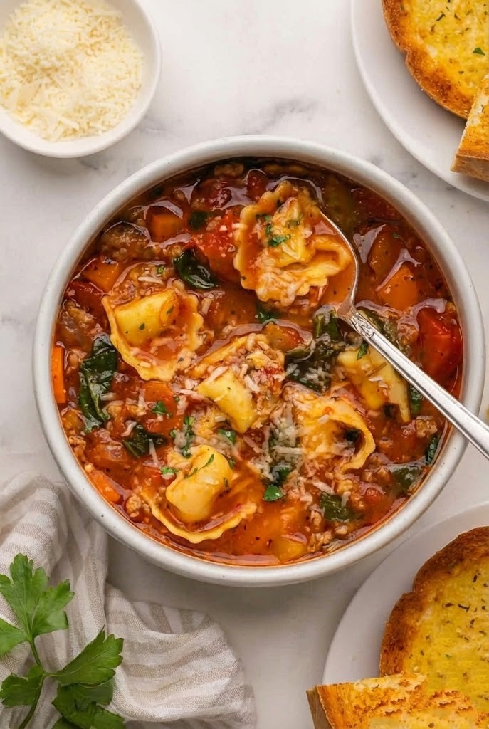 You could enjoy it as a full meal on its own, especially on cold days. The sausage, tortellini, and vegetables make it filling enough without extra sides.