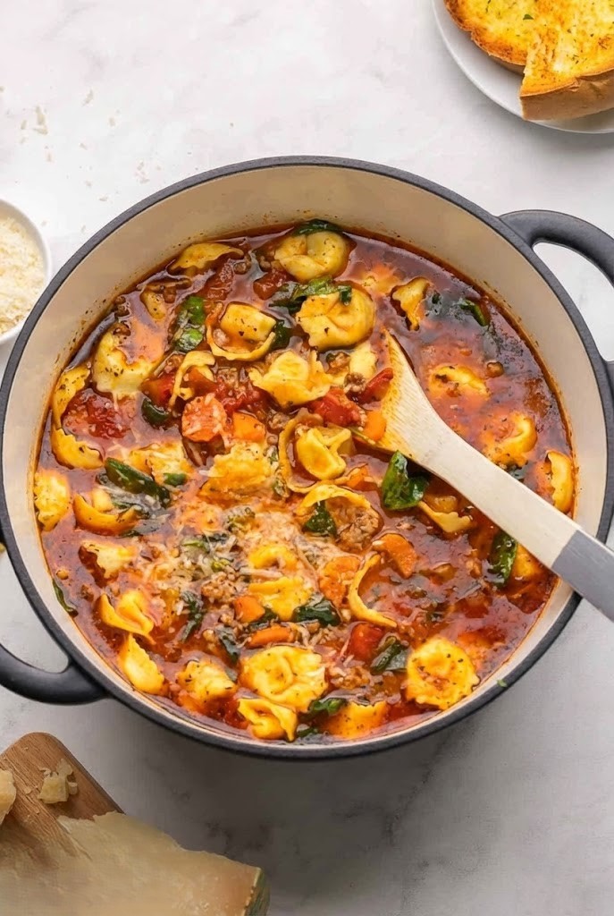 If you plan to cook it ahead, prepare the soup but wait to add the tortellini until serving. This prevents the pasta from becoming too soft or mushy in the fridge.