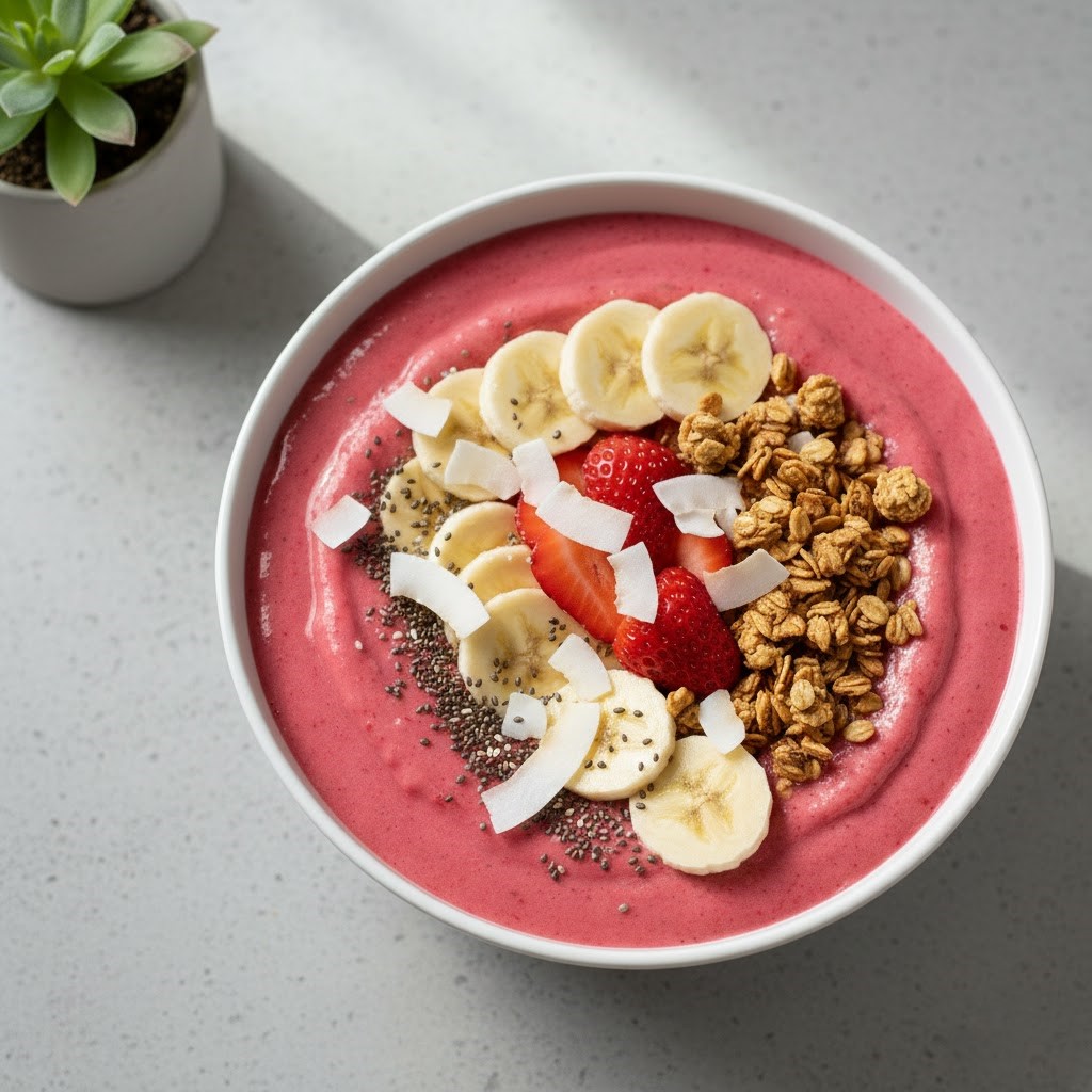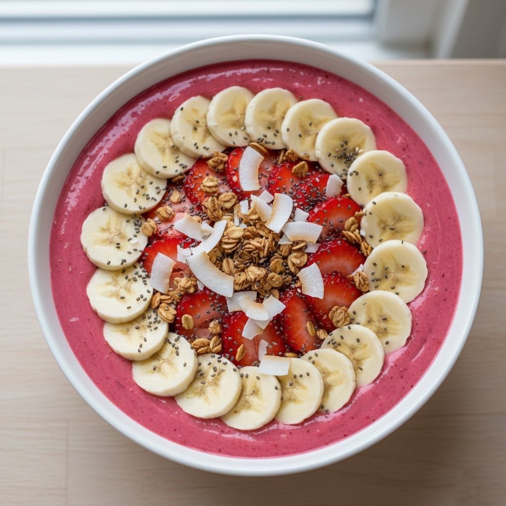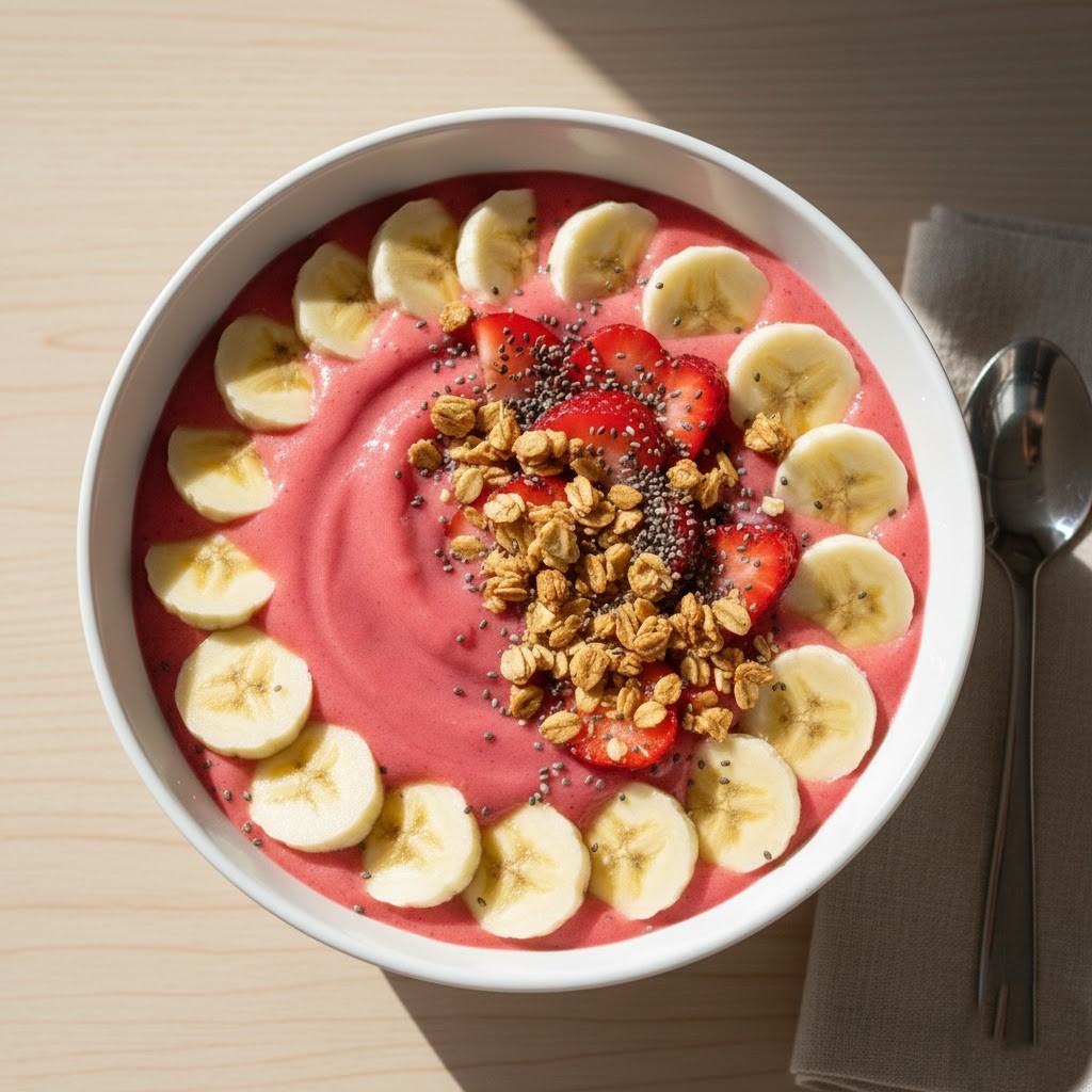 This Strawberry Banana Smoothie Bowl is a simple, refreshing, and nourishing option for any time of day. It combines natural sweetness with a creamy texture that feels satisfying without being heavy.