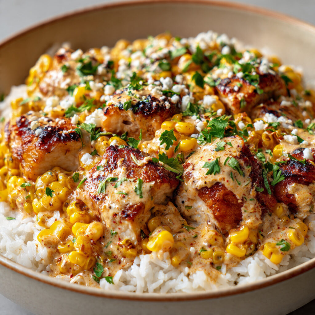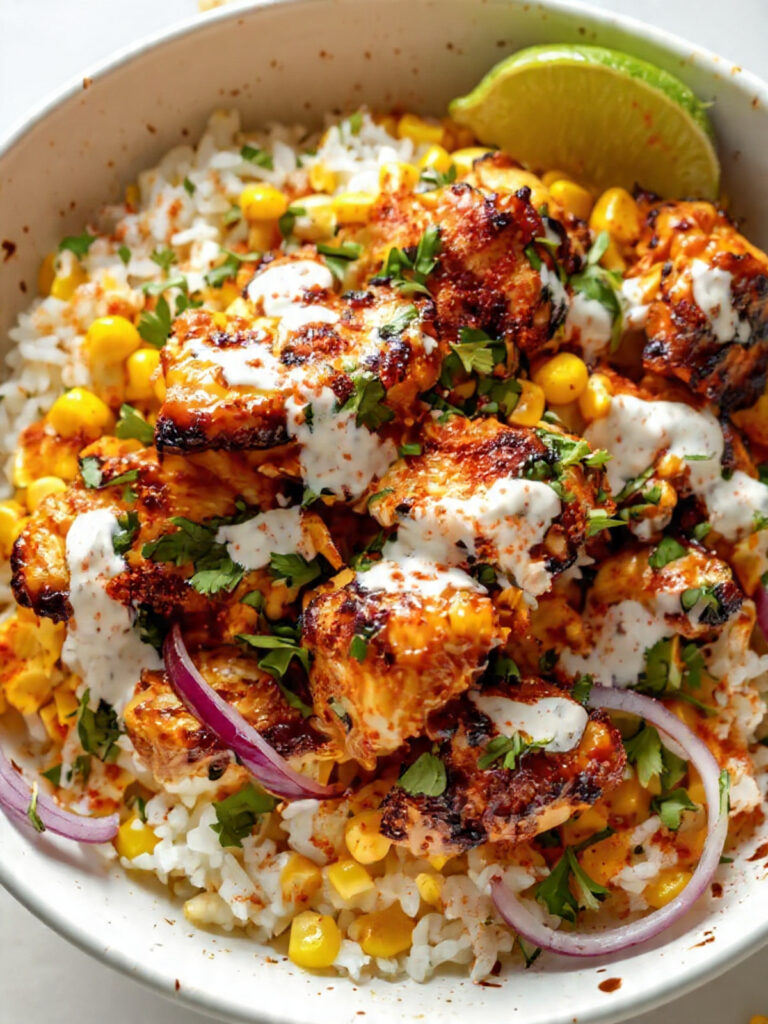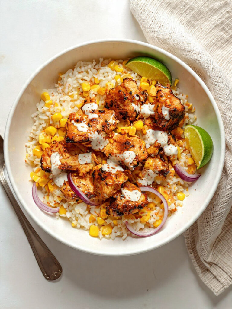 Street Corn Chicken Rice Bowl: Creamy, Zesty & Filling