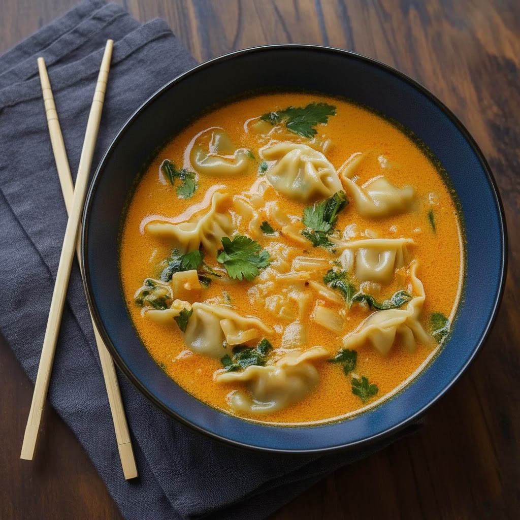 Is this soup vegan-friendly? Yes, use plant-based dumplings and vegetable broth. Coconut milk provides creaminess, so the soup remains rich and satisfying.