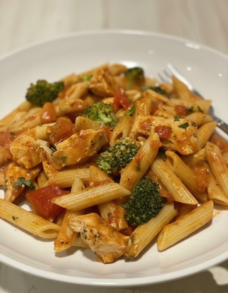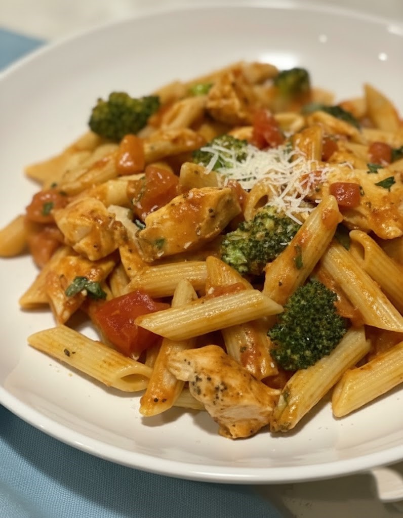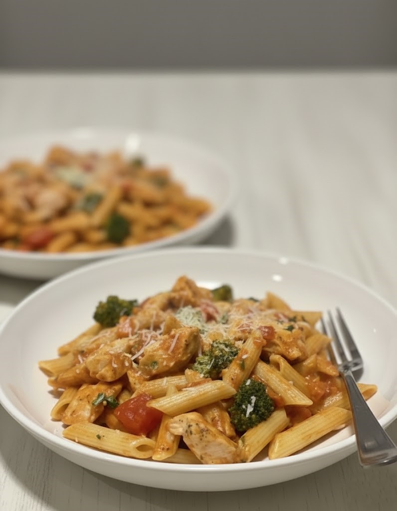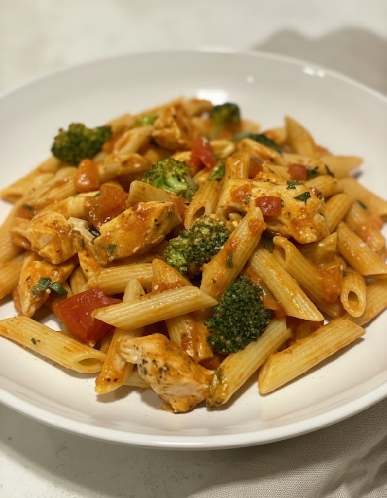 I often turn to this recipe for dinner after a long day or for a relaxed weekend lunch. The creamy tomato sauce clings to the penne, the chicken makes it hearty, and the broccoli adds a light, balanced bite.