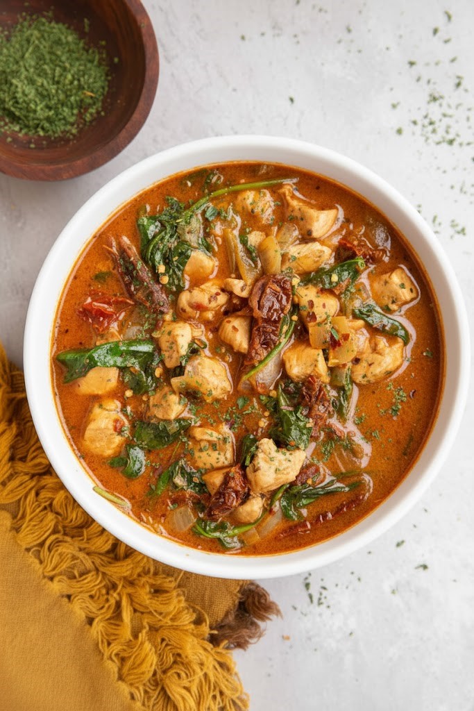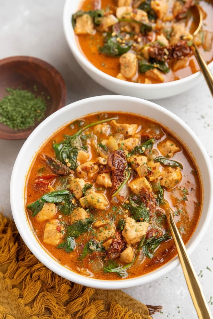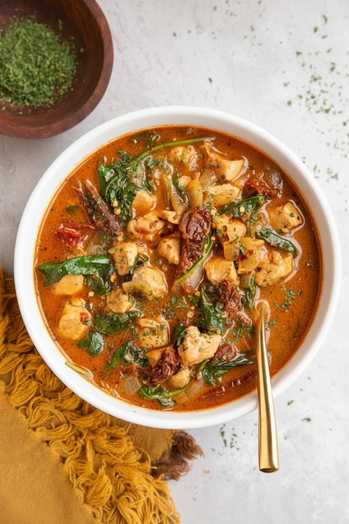 The flavors are deep and satisfying thanks to garlic, herbs, and sun-dried tomatoes. Every spoonful feels warm and well-seasoned.